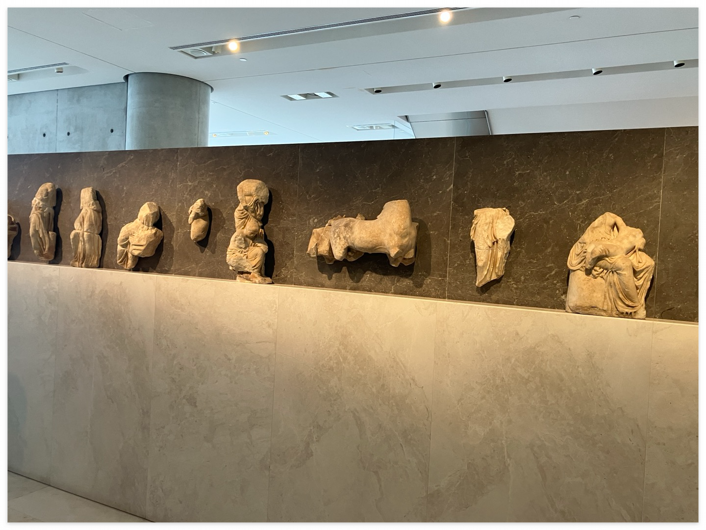 전시실 안에는 파르테논 신전을 장식했던 조각 파편들, 신화 속 장면을 담은 부조, 고대 그리스 사람들이 사용하던 생활 도구까지 다양하게 전시되어 있었습니다.